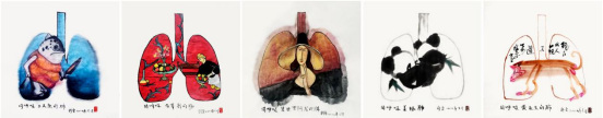 在舒勇“每日一畫”創(chuàng)造的眾多意象中,《同呼吸共命運》系列大概是最簡單至極的表達。作品運用“肺”的基本形態(tài)作為背景容器,將世界各國著名藝術家作品及思想融進了這個基本形態(tài)的肺容器中。以此來表達,我們雖然生活在不同的地方,來自不同的國家,擁有不同的膚色、不同的文化,但是我們有同樣的肺,呼吸在同一片藍天下。