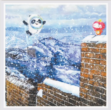 有人困于生活的瑣碎庸庸度日,也有人不甘平庸,在彷徨中奮力向前。舒勇在《一起向未來》系列作品中為我們開辟了一個逃離單調現實的夢幻世界,簡單樸實的平面化特征,可愛的冰墩墩和雪容融形象高度概括、簡潔又形神兼?zhèn)洌挥行问礁?、秩序感、韻律感,具有強烈的裝飾性和形式美感,他對色彩的使用結合了綜合主義風格,將我們卷入另一個時空,這就是藝術想象力的魅力所在。透過絢爛豐富的畫作,我們看到的是舒勇飽滿而熱烈的心靈,是最純粹的情感流淌,是源源不絕的熱切期待和渴望。