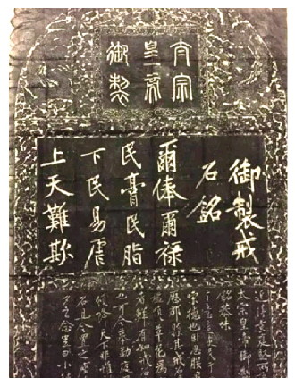 孟昶的《官箴》文筆顯然優(yōu)美,但內(nèi)容深奧難懂。因此,宋太宗趙光義即位后,摘取了其中“爾俸爾祿,民膏民脂。下民易虐,上天難欺”四句,并親筆書寫,頒行天下,“以賜郡國,立于廳事之南,謂之《戒石銘》”。這就是后世通行的《戒石銘》。而頒布《戒石銘》目的,就是“使守令僚佐觸目警心,務(wù)求為良吏”。