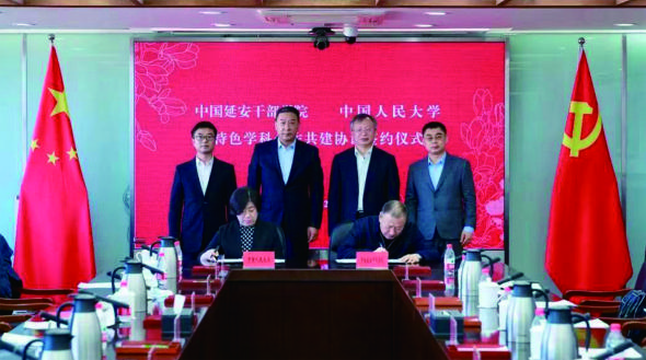 2月13日,中國人民大學與中國延安干部學院特色學科合作共建協(xié)議簽約儀式在中國人民大學舉行。中國人民大學黨委書記張東剛,黨委副書記、副校長胡百精,副校長王易;中國延安干部學院分管日常工作的副院長姜澤洵,副院長趙耀宏、韓東暉出席簽約儀式。中國人民大學黨委副書記齊鵬飛主持簽約儀式。