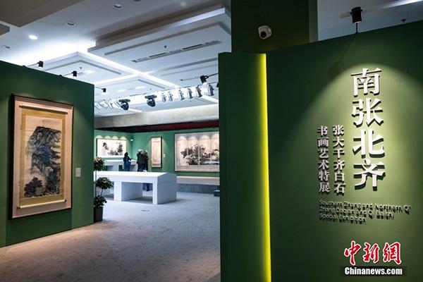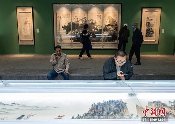4月13日,市民在北京榮寶齋欣賞在此舉辦的“南張北齊——張大千齊白石書畫藝術(shù)特展”。本次特展精選張大千與齊白石一生早、中、晚三個(gè)時(shí)期,近五十件(組)佳作,完整地涵蓋了兩位世紀(jì)巨匠各個(gè)時(shí)期的創(chuàng)作面貌。中新社記者 侯宇 攝