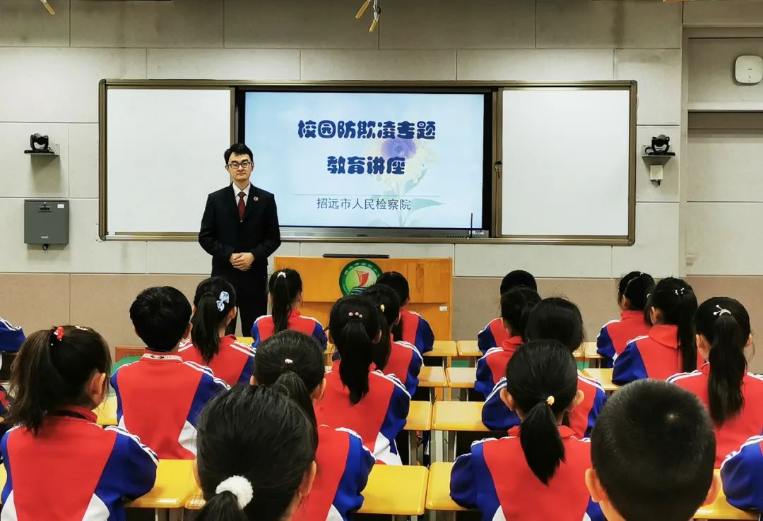 “六一”兒童節(jié)即將來(lái)臨之際,招遠(yuǎn)市人民檢察院“金鼎”青年志愿先鋒服務(wù)隊(duì)的干警開(kāi)展“向日葵”行動(dòng)送法進(jìn)校園,走進(jìn)招遠(yuǎn)市泉山學(xué)校,為該校80余名同學(xué)送去了一堂別開(kāi)生面的法治教育課。檢察干警以預(yù)防校園暴力、防性侵及預(yù)防網(wǎng)絡(luò)詐騙為主題,結(jié)合典型案例和法律規(guī)定,用通俗易懂的語(yǔ)言,講述了校園欺凌、性侵及網(wǎng)絡(luò)詐騙的定義、危害、產(chǎn)生原因和法律責(zé)任。期間,檢察干警與在場(chǎng)的學(xué)生積極互動(dòng),就同學(xué)們現(xiàn)場(chǎng)提出的問(wèn)題進(jìn)行解答,引導(dǎo)同學(xué)們養(yǎng)成遵紀(jì)守法、自覺(jué)抵制不良行為的良好習(xí)慣和法治意識(shí)。隨后通過(guò)講述真實(shí)案例,讓同學(xué)們意識(shí)到違法犯罪行為的利害關(guān)系,提高同學(xué)們的自我保護(hù)意識(shí),讓大家可以有效預(yù)防。