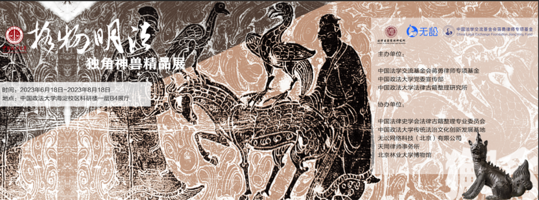 6月21日,“格物明法:獨(dú)角神獸精品展”開展式在中國(guó)政法大學(xué)海淀校區(qū)舉行。展覽由中國(guó)法學(xué)交流基金會(huì)蔣勇律師專項(xiàng)基金、中國(guó)政法大學(xué)黨委宣傳部、法律古籍整理研究所共同主辦,中國(guó)法律史學(xué)會(huì)法律古籍整理專業(yè)委員會(huì)、中國(guó)政法大學(xué)傳統(tǒng)法治文化創(chuàng)新發(fā)展基地、無(wú)訟網(wǎng)絡(luò)科技(北京)有限公司、天同律師事務(wù)所和北京林業(yè)大學(xué)博物館等單位協(xié)辦。