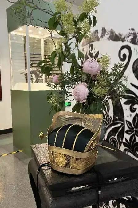 在展示環(huán)節(jié)中,北京服裝學(xué)院崔巖老師向大家講解了精心復(fù)制的兩頂獬豸冠。