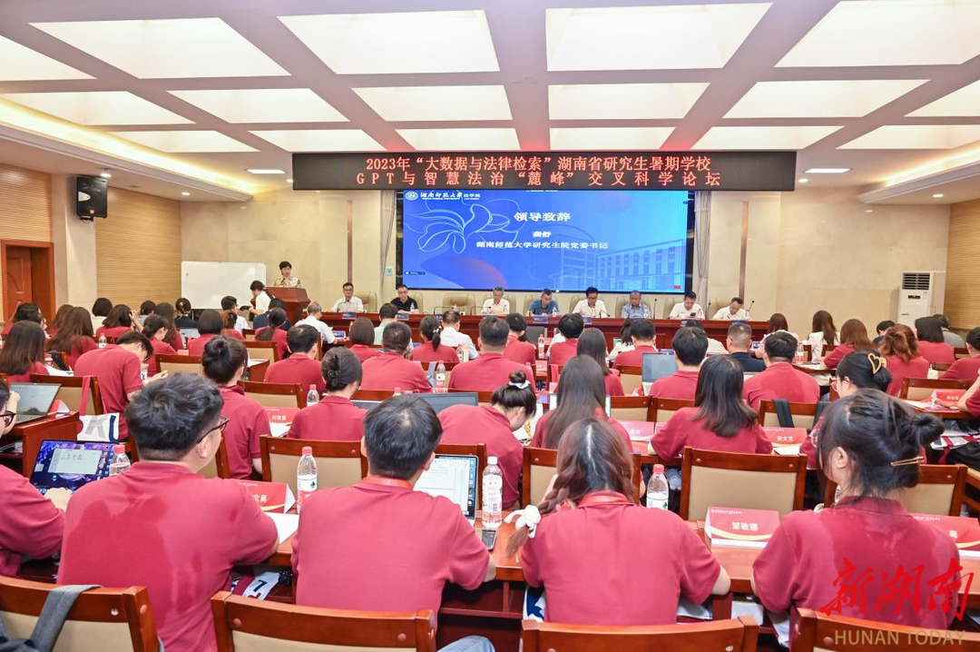 8月1日,“大數據與法律檢索”湖南省研究生暑期學校在湖南師范大學法學院開班,并在開幕式后舉行了GPT與智慧法治“麓峰”交叉學科論壇。來自最高人民檢察院、北京大學、中國人民大學、北大法寶等單位近30位專家學者對上述前沿問題給出了答案,暑期學校128名學員線下參與學習。1.2萬余人通過北大法寶學堂平臺觀看了同步直播。