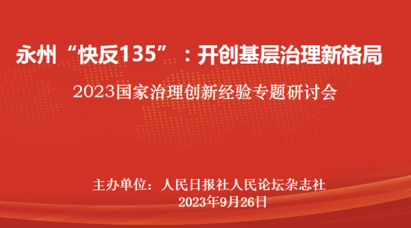 9月26日,“永州‘快反135’:開創(chuàng)基層治理新格局——2023國家治理創(chuàng)新經(jīng)驗(yàn)專題研討會(huì)”在北京人民日?qǐng)?bào)社新媒體大廈舉行。