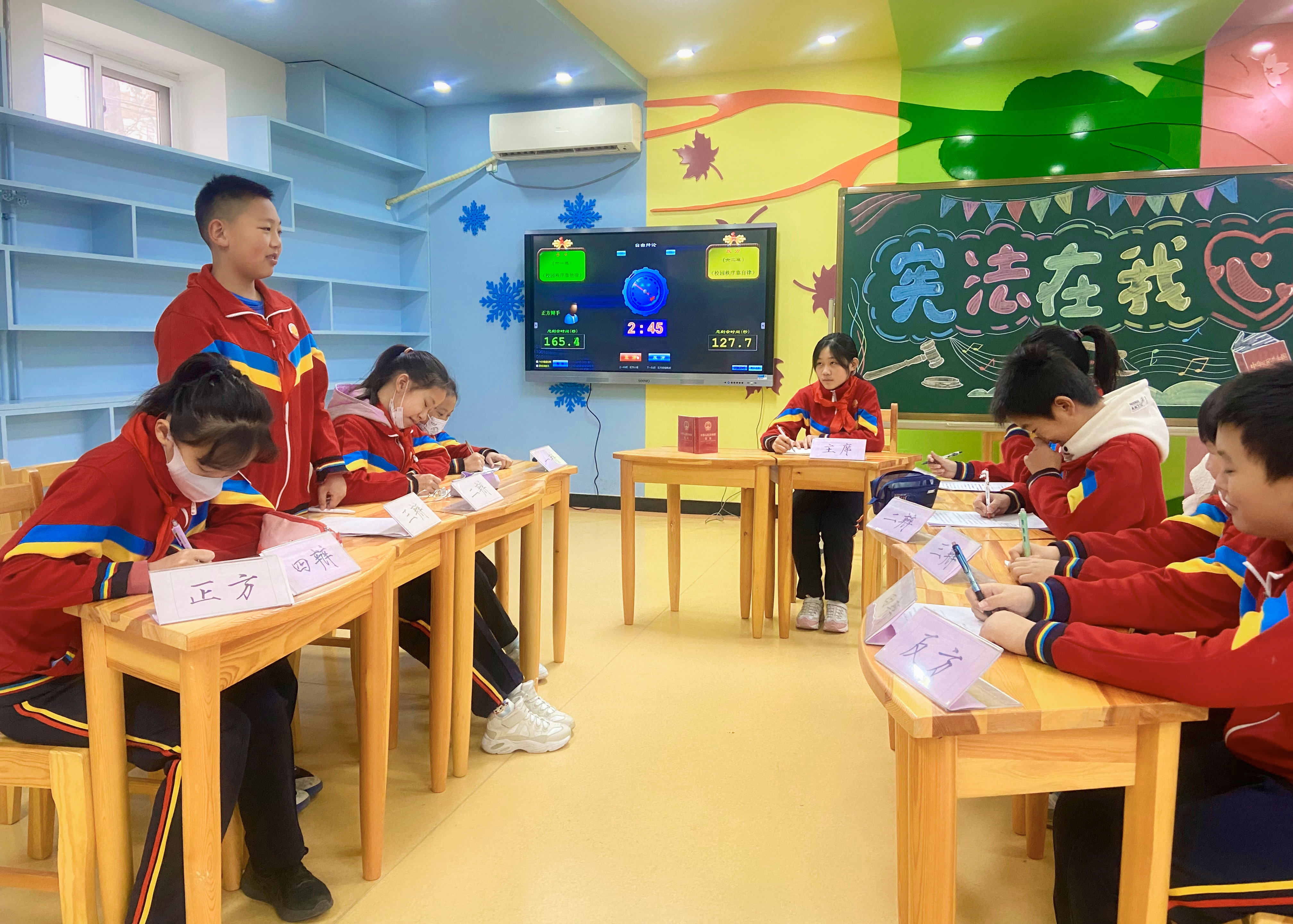 高家園小學(xué)學(xué)生開展“知憲法 學(xué)憲法”辯論賽。