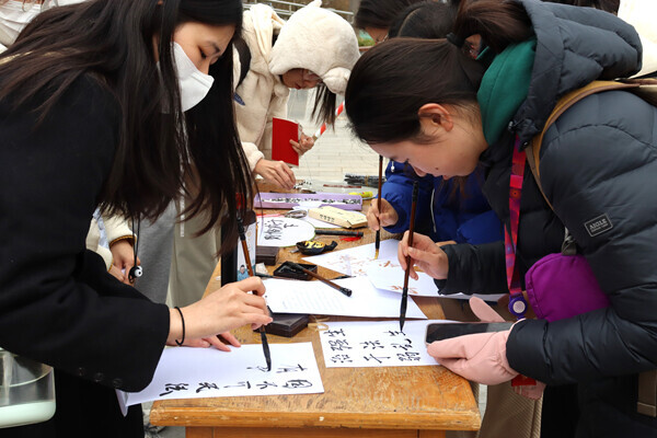 同一天,主題活動在清華大學(xué)學(xué)生服務(wù)中心前舉辦?;顒油ㄟ^限時背誦憲法名言、法律知識問答等游戲方式,向師生普及憲法,引導(dǎo)學(xué)習(xí)憲法?,F(xiàn)場設(shè)計了“想點(diǎn)大事”“三行情書”“與法同行”“現(xiàn)身‘書法’”等活動,鼓勵師生們以筆書寫憲法意,以心感悟憲法情?,F(xiàn)場還準(zhǔn)備了帶有宣傳法治內(nèi)容的小夜燈、筆記本、卡套、文件夾等文創(chuàng)獎品。