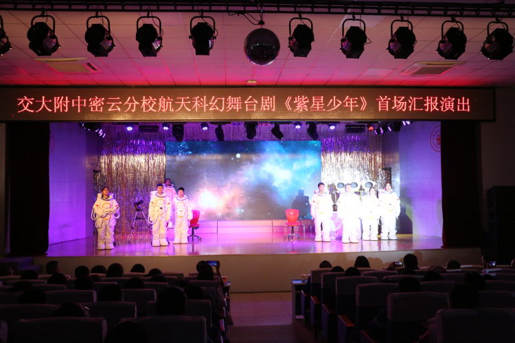 科技是興國之源,教育是立國之本。為進(jìn)一步提高科學(xué)教育意識和學(xué)生科學(xué)素養(yǎng),交大附中密云分?;I備半年的“鑄飛天夢想 促幸福成長”航天科幻舞臺劇《紫星少年》在2024年1月18日首演。北京市密云區(qū)各級領(lǐng)導(dǎo)及各中學(xué)書記、校長參加了活動。