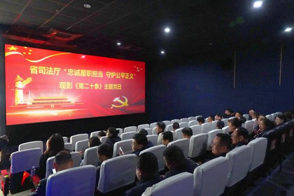 為弘揚(yáng)法治精神,傳遞法治理念,貫徹落實(shí)全省“三抓三促”行動推進(jìn)會議精神,激發(fā)忠誠履職擔(dān)當(dāng)?shù)膬?nèi)在動力,2月21日下午,甘肅省司法廳組織開展《第二十條》集體觀影主題黨日活動。
