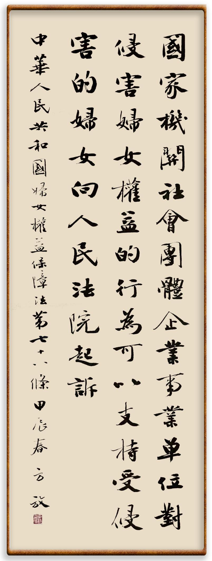 在“三八”國(guó)際婦女節(jié)之際,“書·法”系列活動(dòng),邀請(qǐng)書法家及書法愛好者們將筆端對(duì)準(zhǔn)《中華人民共和國(guó)婦女權(quán)益保障法》,書寫屬于婦女的法律“盾牌”。