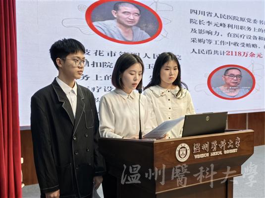 為提升廉潔文化教育的影響力、穿透力,讓廉潔課真正講到大學生的心坎里,溫州醫(yī)科大學檢驗醫(yī)學院(生命科學學院)運用團體動力學原理開設(shè)“板塊廉潔課堂”,扣好大學生廉潔自律的“第一扣”。“雖然一節(jié)課只有短短二十分鐘,但‘黨味’濃、‘廉味’純、我愛聽也愛講。我與小組成員集體備課、熟練通過辯論賽、角色扮演、朗誦等多種形式上好一堂廉潔課。競賽式的授課也激起了我們的好勝心,在良性競爭中將廉潔課越講越好、越講越有趣。”學生小董說。