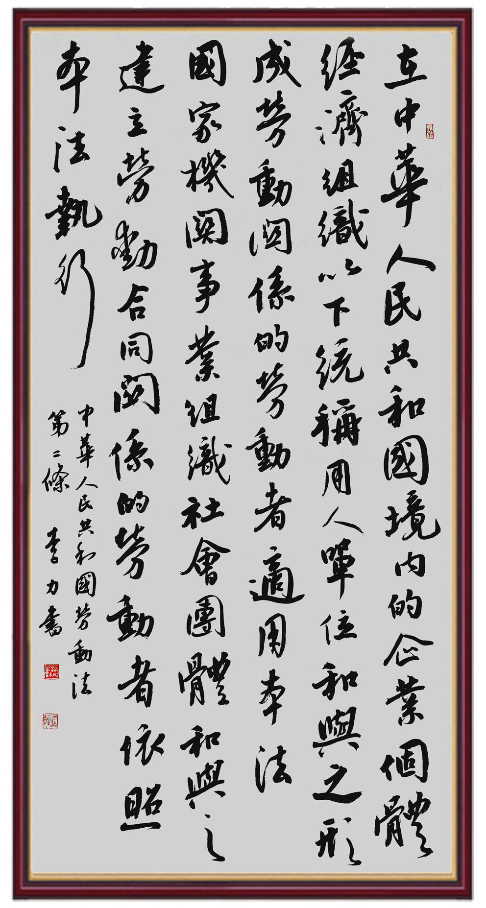 法律,是勞動(dòng)者披荊斬棘的鎧甲;書(shū)法,是法治精神薪火相傳的載體。