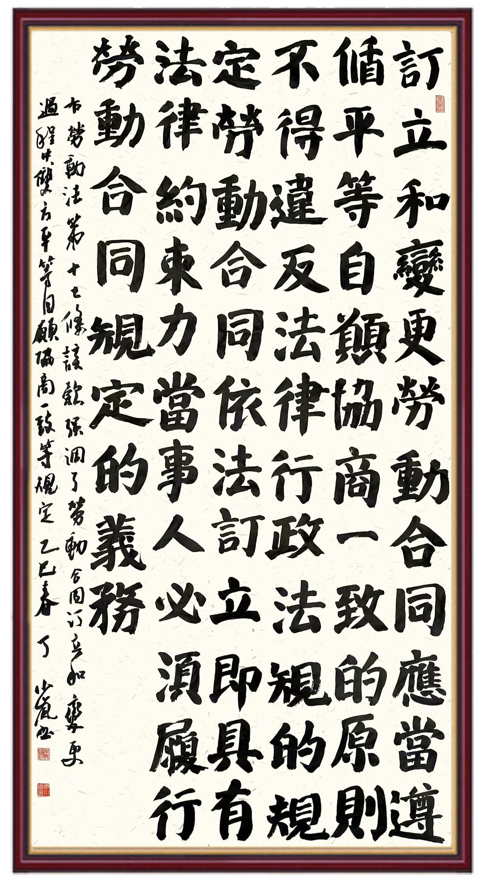 法律,是勞動(dòng)者披荊斬棘的鎧甲;書(shū)法,是法治精神薪火相傳的載體。