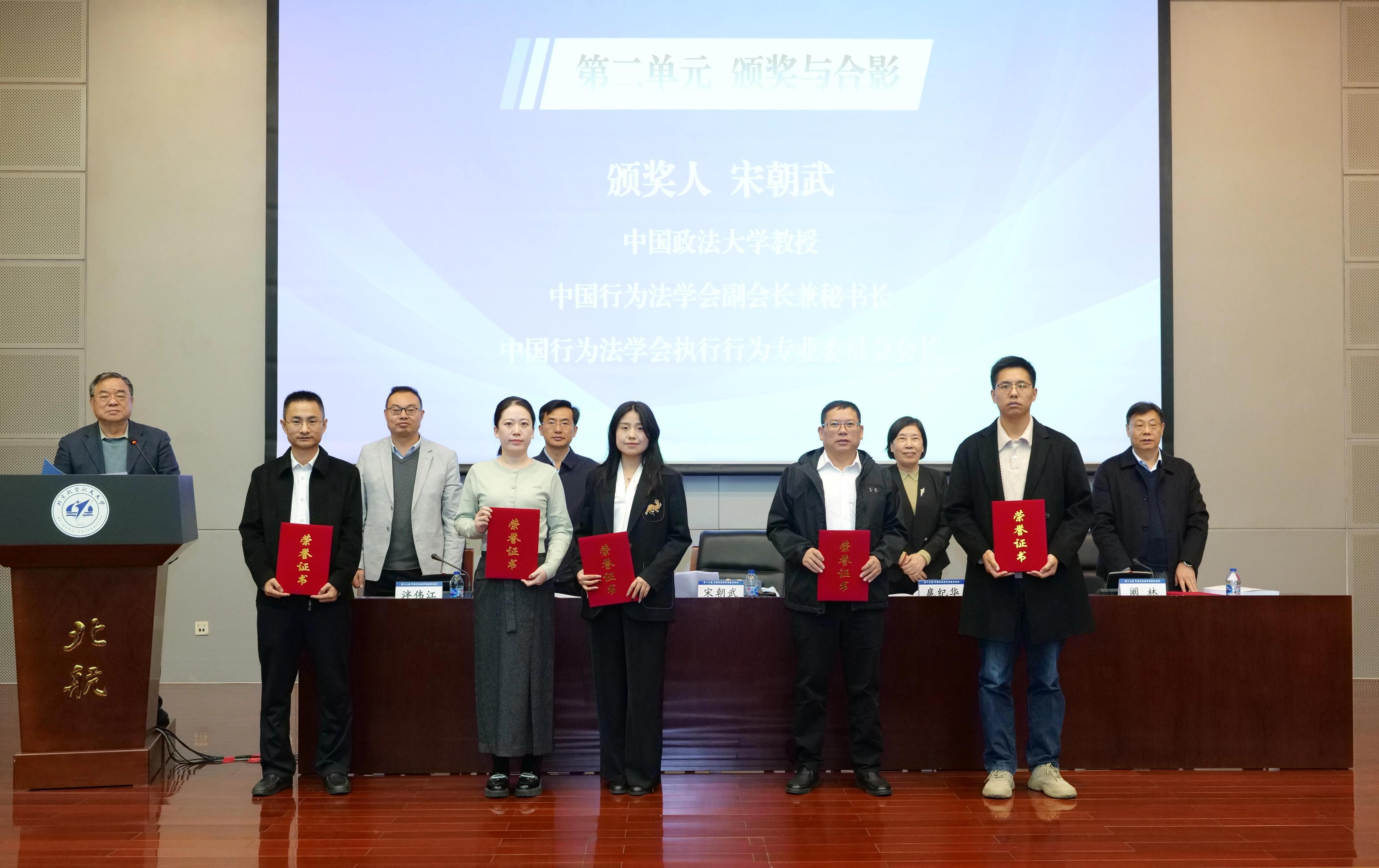論文頒獎環(huán)節(jié),國家法官學(xué)院教授、中國行為法學(xué)會執(zhí)行行為專業(yè)委員會副會長金俊銀介紹論文評選情況:自2025年4月10日發(fā)布征稿啟事至8月31日,組委會共收到全國各級法院廣大法官、法學(xué)院校師生和社會有關(guān)人士提交的參評論文482篇。經(jīng)“雙向匿名評審、原創(chuàng)性檢測”等嚴(yán)格流程,最終評選出一等獎?wù)撐?篇、二等獎?wù)撐?5篇、三等獎?wù)撐?7篇、優(yōu)秀獎?wù)撐?0篇。北京市高級人民法院、上海市高級人民法院、江蘇省高級人民法院和湖南省高級人民法院榮獲組織工作先進(jìn)獎。宋朝武宣布名單后,獲獎代表上臺領(lǐng)獎。