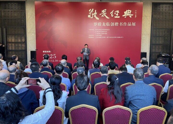 12月20日,“敬畏經(jīng)典——羅殿龍臨創(chuàng)楷書(shū)作品展”在廣西書(shū)畫(huà)院美術(shù)館舉辦。本次展覽由中國(guó)文化藝術(shù)發(fā)展促進(jìn)會(huì)、廣西法治文化研究會(huì)、廣西民族文化研究院主辦,廣西書(shū)法院承辦。開(kāi)幕式上,廣西壯族自治區(qū)黨委原常委、宣傳部長(zhǎng)黃道偉,中國(guó)文聯(lián)黨組原副書(shū)記、副主席覃志剛先后致辭。知名書(shū)法家、廣西壯族自治區(qū)高級(jí)人民法院原院長(zhǎng)羅殿龍致答謝辭。廣西壯族自治區(qū)黨委原書(shū)記曹伯純宣布展覽開(kāi)幕。開(kāi)幕式由廣西書(shū)法院院長(zhǎng)閉理書(shū)主持。