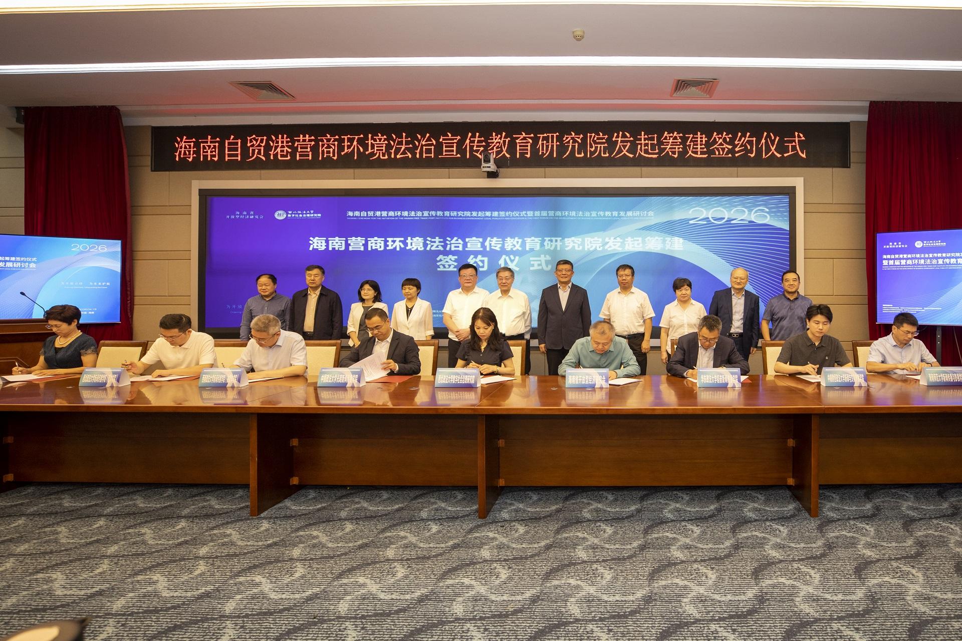 會(huì)上,九家發(fā)起單位共同簽署共建協(xié)議,“海南自貿(mào)港營(yíng)商環(huán)境法治宣傳多語(yǔ)種智能教育平臺(tái)”正式發(fā)布,優(yōu)化營(yíng)商環(huán)境大學(xué)生法治宣講團(tuán)同時(shí)獲授旗。據(jù)介紹,研究院實(shí)行輪值理事長(zhǎng)制,秘書(shū)處常設(shè)海南,每年將系統(tǒng)推進(jìn)法治宣講、課題研究、合規(guī)指導(dǎo)等五項(xiàng)重點(diǎn)工作。