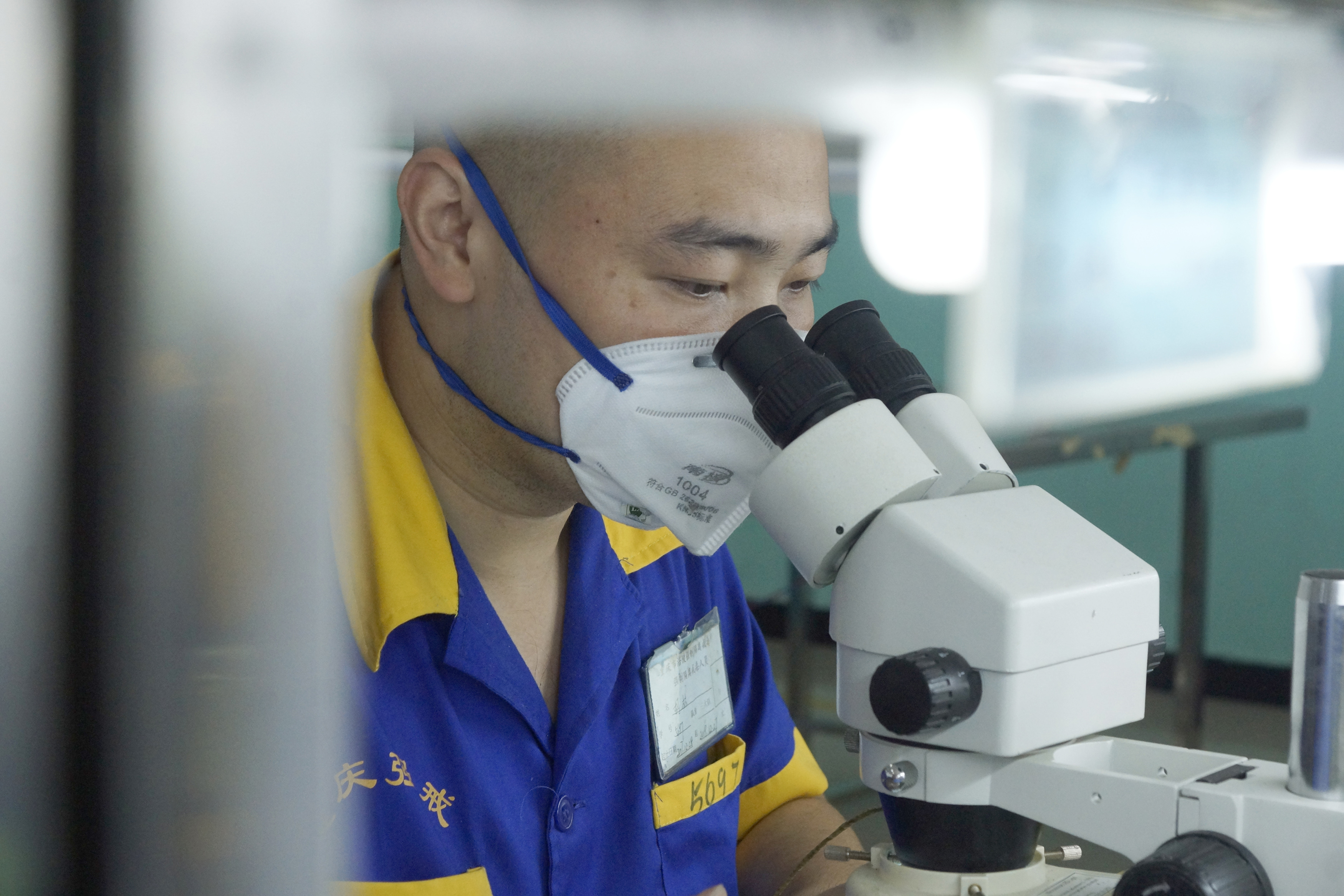 習藝生產(chǎn)車間,一名戒毒人員一絲不茍地參加康復勞動