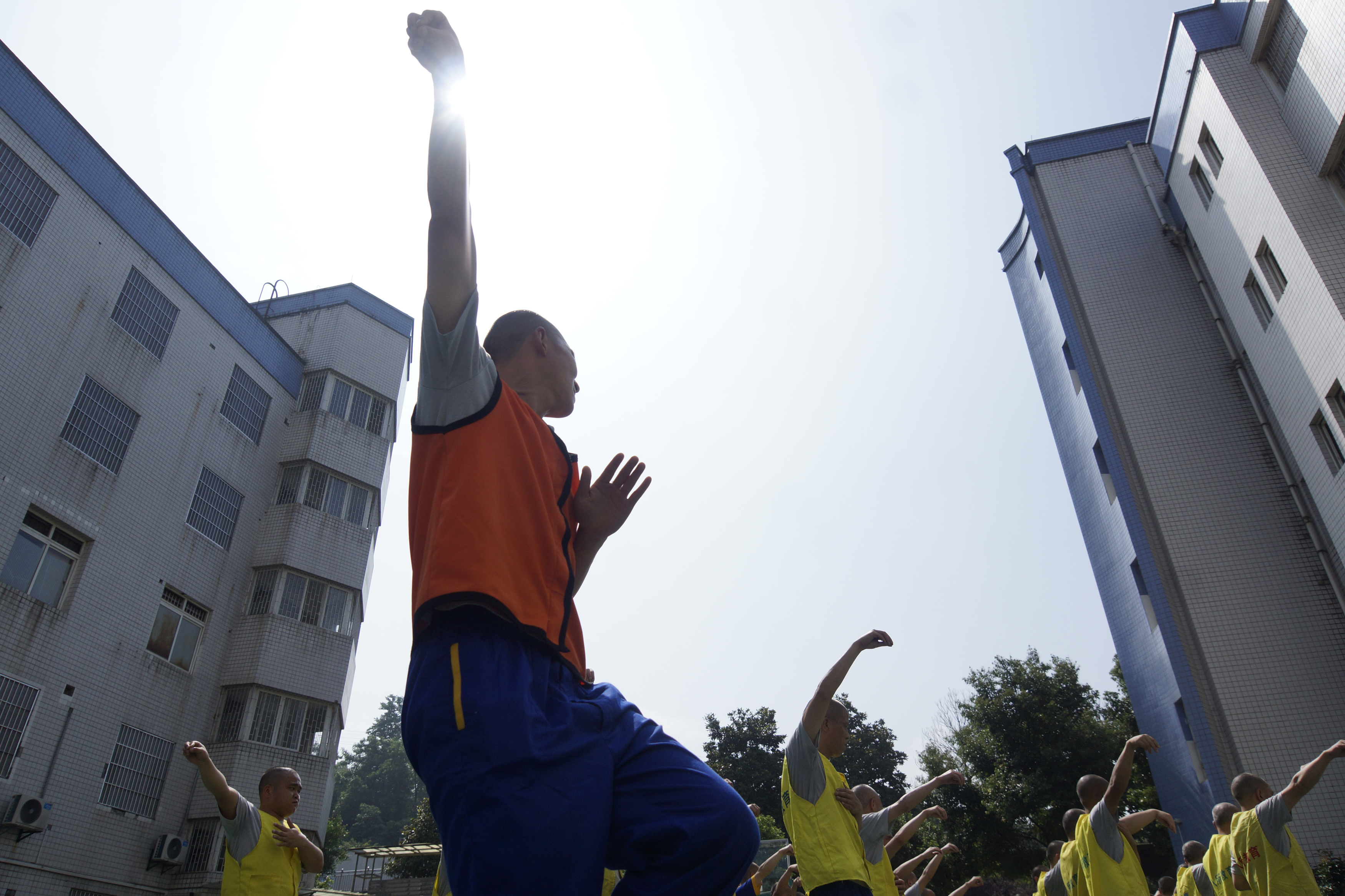 大隊籃球場,戒毒人員練習太極拳康復健身