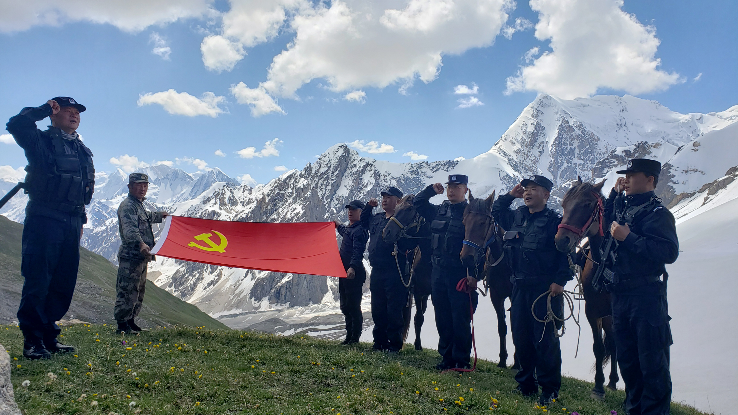 為加強邊境一線管控,近日,新疆伊犁邊境管理支隊夏特邊境派出所民警聯(lián)合群眾護邊員深入天山山脈木扎爾特冰川古道達(dá)坂前沿踏查。期間,民警風(fēng)餐露宿,頂著4000余米的海拔和強烈紫外線,全面了解掌握了邊境前沿動態(tài),有效消除了各類隱患。 法制網(wǎng)記者 潘從武 通訊員 李康強 閆貴峰 攝