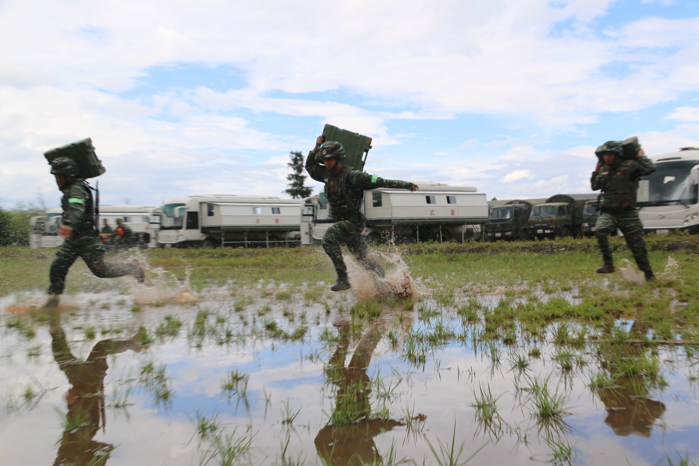 支隊以嚴重威脅人民群眾生命財產(chǎn)安全為模擬背景,緊貼地方汛情特點,突出抗洪搶險組織指揮、行動協(xié)同和險情處置等,重點圍繞搶救落水群眾、轉(zhuǎn)移群眾物資、克服管涌、植樁固坡等13個課目進行演練。