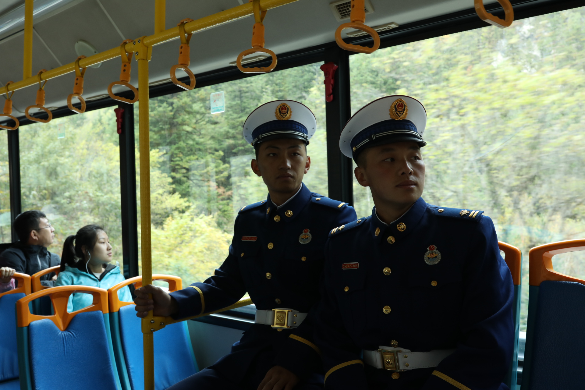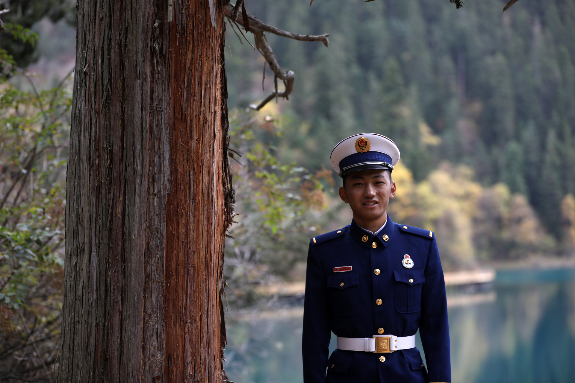 廖海州和中隊(duì)長倪磊并肩巡邏在五花海景點(diǎn)的棧道上,“前年地震,我們從這里抬出來了好幾個受傷游客.....”這對同年入伍的老隊(duì)員 最能聊到一起。