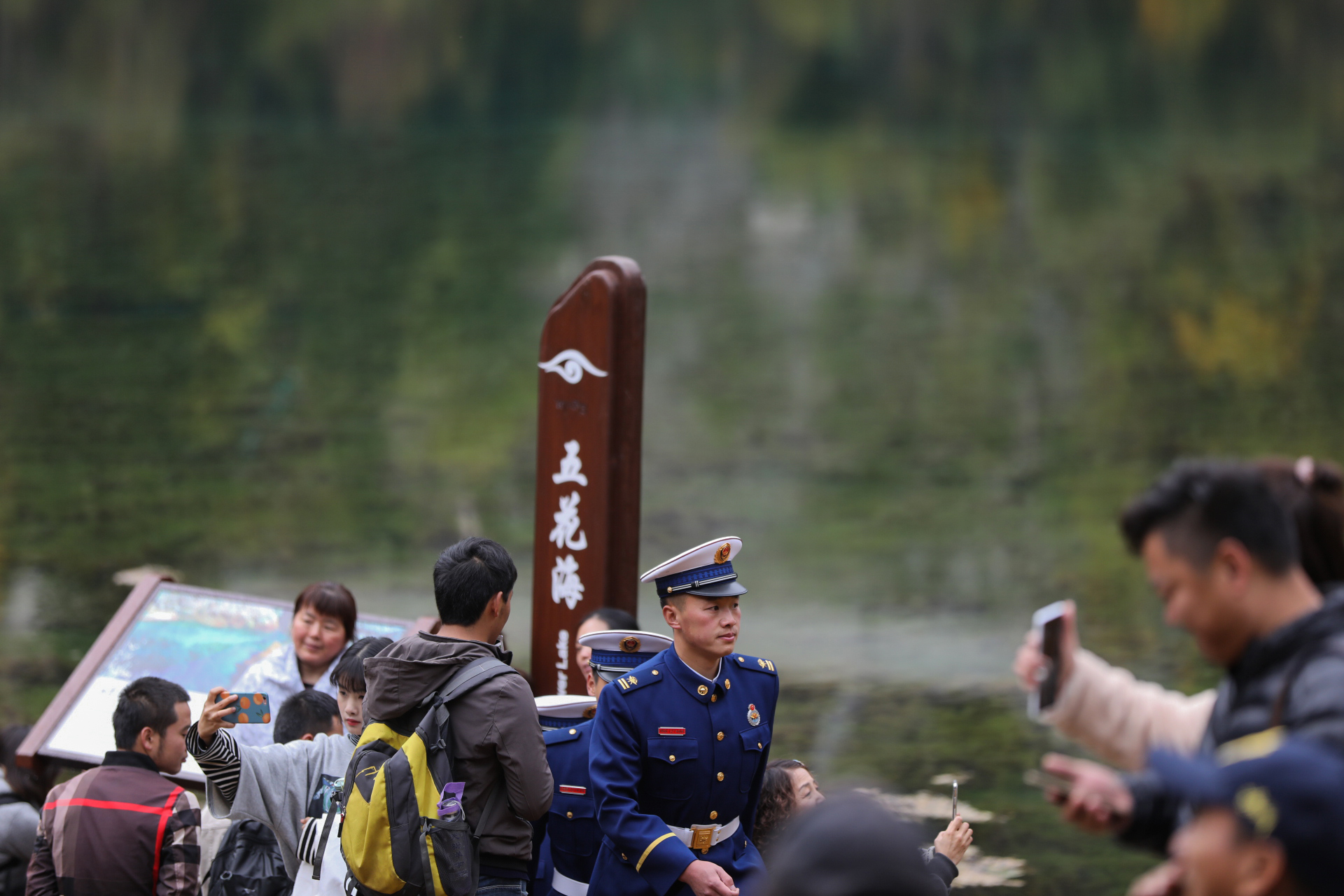 澤汪塔像往常一樣出現(xiàn)在景區(qū)的棧道上,他和隊(duì)友巡邏在游客最多的長海和五彩池附近,擔(dān)負(fù)著周邊的森林防火工作和游客安全。