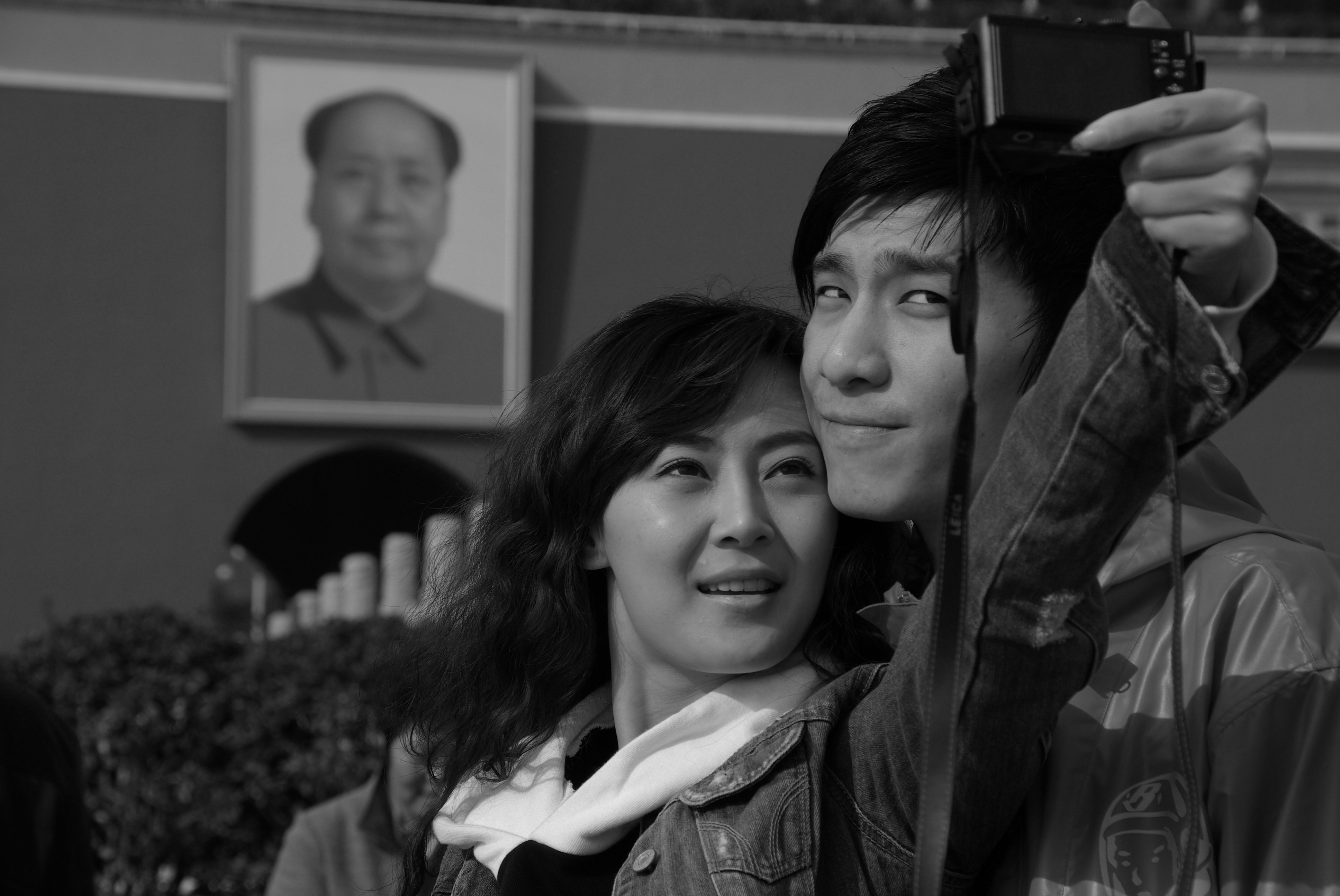 2009年3月23日,北京天安門前一對(duì)戀人在自拍。蔣鐸攝