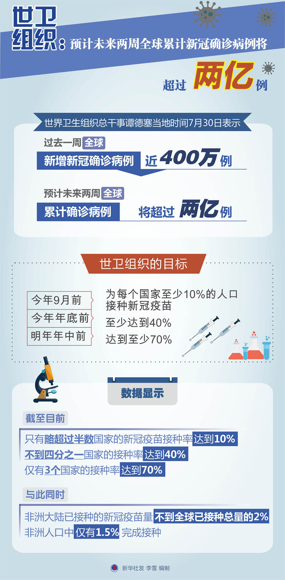 圖表:世衛(wèi)組織:預(yù)計(jì)未來兩周全球累計(jì)新冠確診病例將超過兩億例
