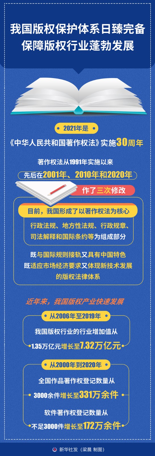 2021年是《中華人民共和國著作權法》實施30周年,記者從10月16日在杭州開幕的第八屆中國國際版權博覽會上獲悉,30年來我國版權保護體系日臻完備,保障版權行業(yè)蓬勃發(fā)展。