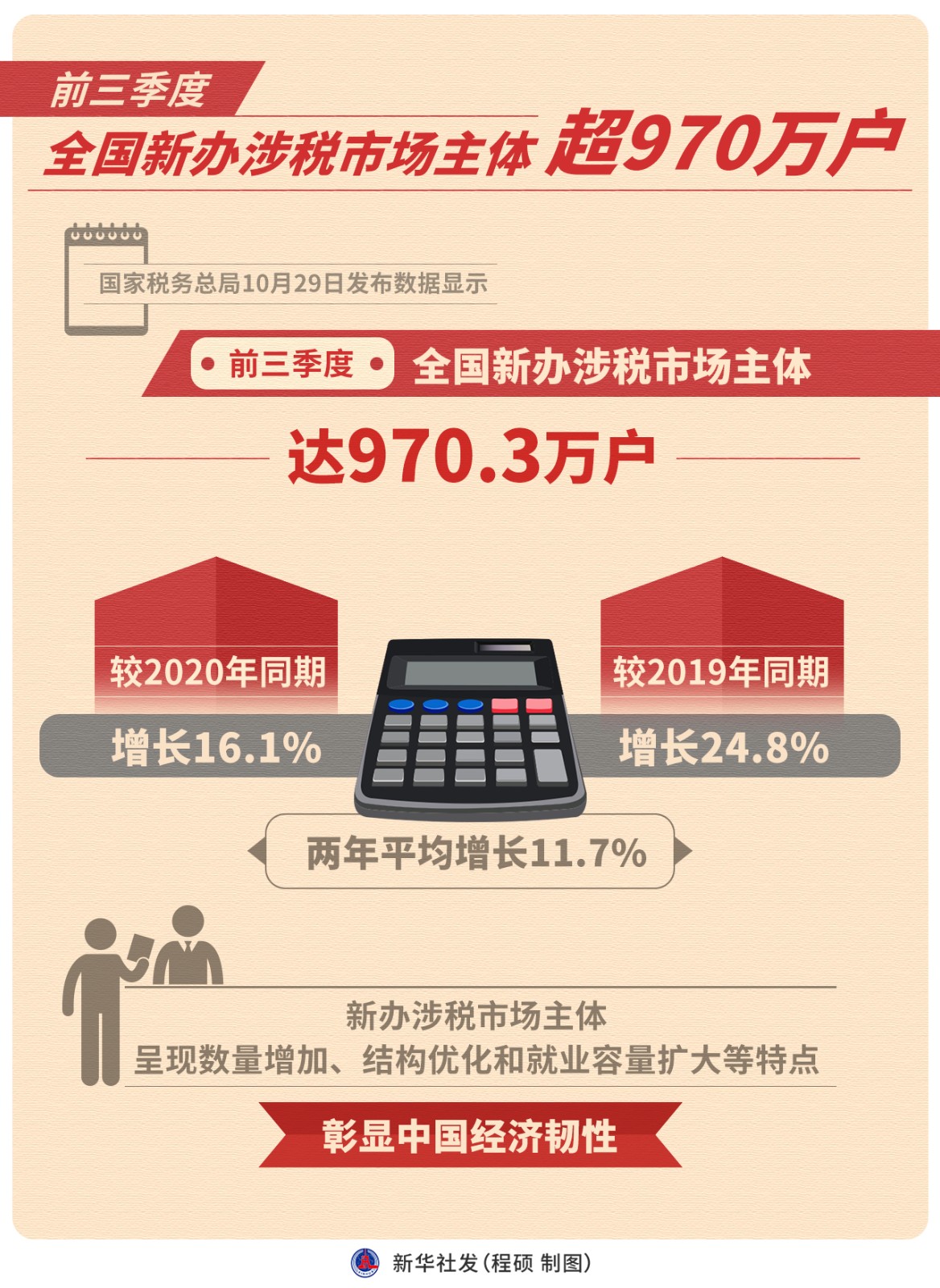 圖表:前三季度全國新辦涉稅市場(chǎng)主體超970萬戶
