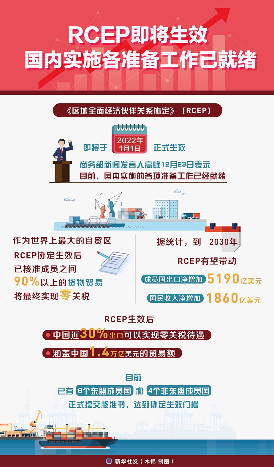 《區(qū)域全面經(jīng)濟(jì)伙伴關(guān)系協(xié)定》(RCEP)即將于2022年1月1日正式生效。商務(wù)部新聞發(fā)言人高峰12月23日表示,目前,國(guó)內(nèi)實(shí)施的各項(xiàng)準(zhǔn)備工作已經(jīng)就緒。
