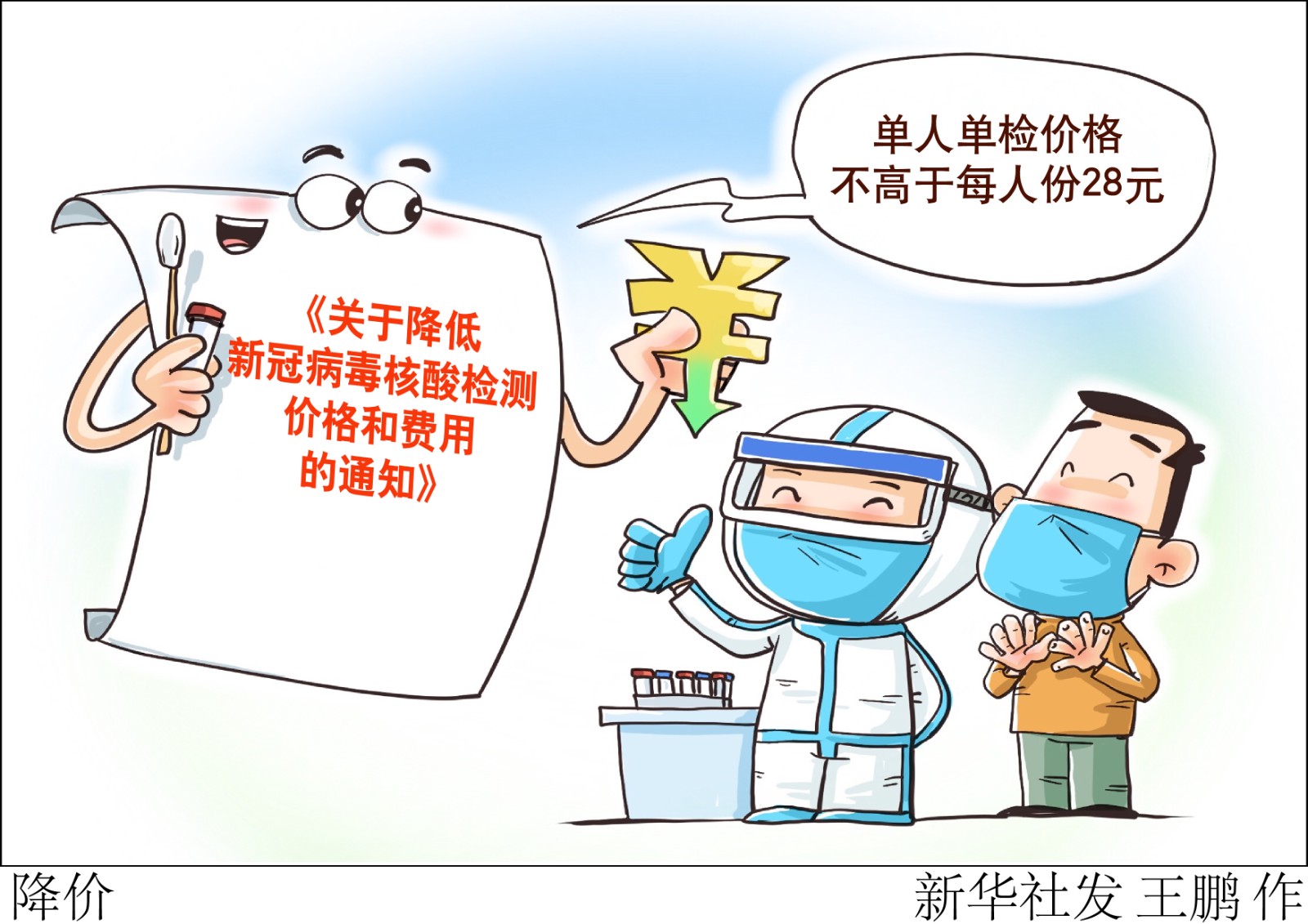 為適應(yīng)新冠病毒肺炎疫情防控的形勢變化,降低大規(guī)模核酸篩查和高頻率檢測的成本,國家醫(yī)療保障局辦公室、國務(wù)院應(yīng)對新型冠狀病毒肺炎疫情聯(lián)防聯(lián)控機制醫(yī)療救治組4月2日聯(lián)合印發(fā)《關(guān)于降低新冠病毒核酸檢測價格和費用的通知》,明確單人單檢降至不高于每人份28元、多人混檢統(tǒng)一降至每人份不高于8元。