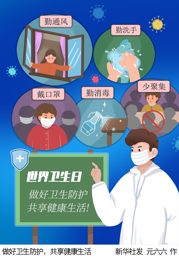 插畫:做好衛(wèi)生防護(hù),共享健康生活