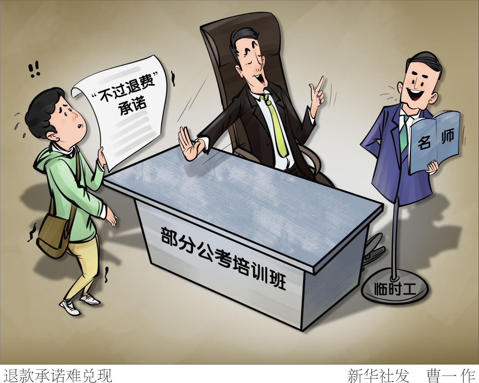 眼下,國家、地方公務(wù)員及選調(diào)生考試筆試大都已經(jīng)結(jié)束,一些地方面試因疫情推遲。為應(yīng)對公考筆試、面試,不少大學(xué)畢業(yè)生參加各種培訓(xùn)班?!靶氯A視點”記者調(diào)查發(fā)現(xiàn),有些培訓(xùn)機(jī)構(gòu)所謂的“名師”,竟是招聘的“臨時工”;所謂“不過退費”,有的難以實現(xiàn)。