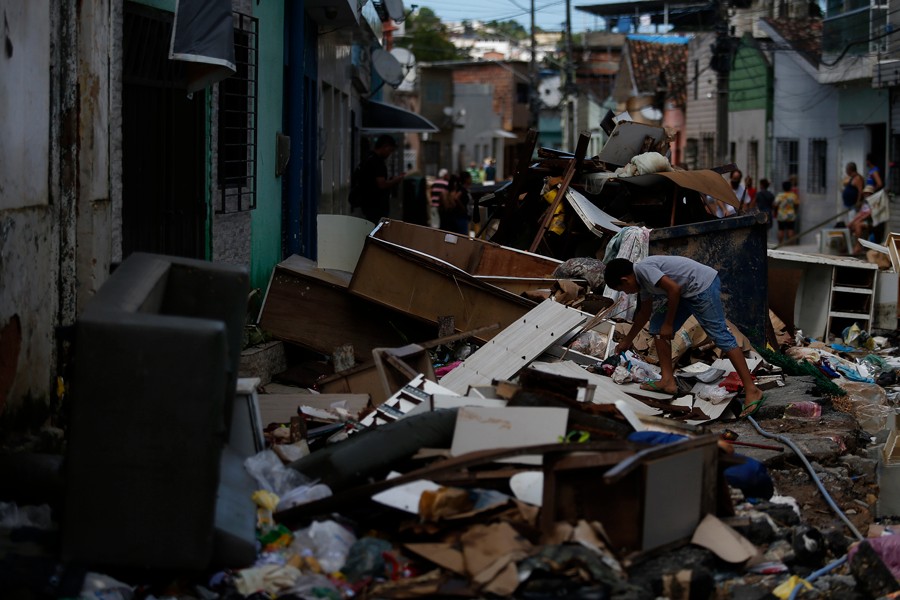 6月1日,在巴西伯南布哥州累西腓,一名男孩查看損壞的家具。