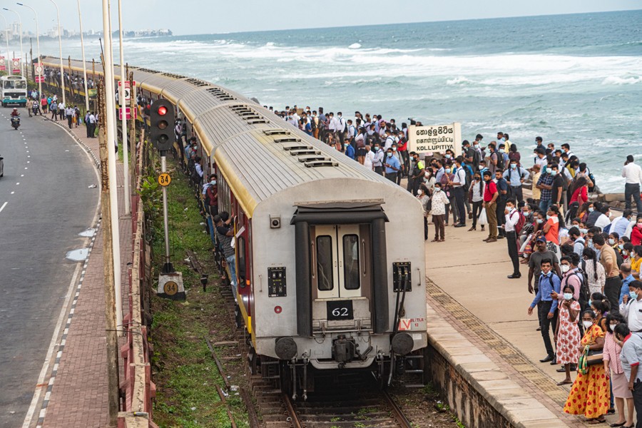 由于燃料短缺和價格提高,加之公共汽車票價上漲,很多斯里蘭卡人開始選擇火車作為出行工具。據(jù)當(dāng)?shù)孛襟w報道,目前火車乘客比以往增加了50%。每當(dāng)上下班高峰時段,火車車廂爆滿,站臺上則擁擠著大量乘客。