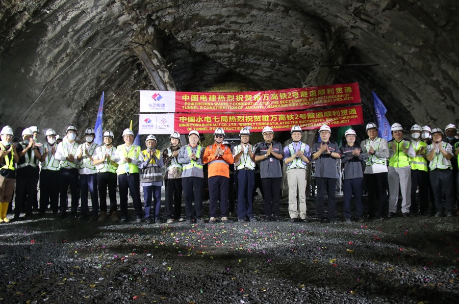 這是6月21日拍攝的印度尼西亞雅萬高鐵2號隧道貫通儀式現(xiàn)場。