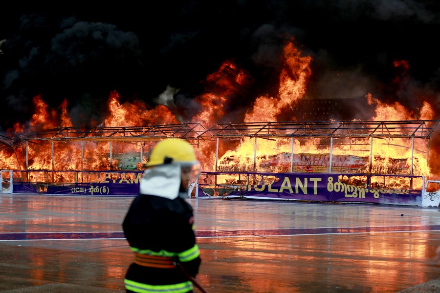 這是6月26日在緬甸仰光拍攝的毒品銷(xiāo)毀現(xiàn)場(chǎng)。