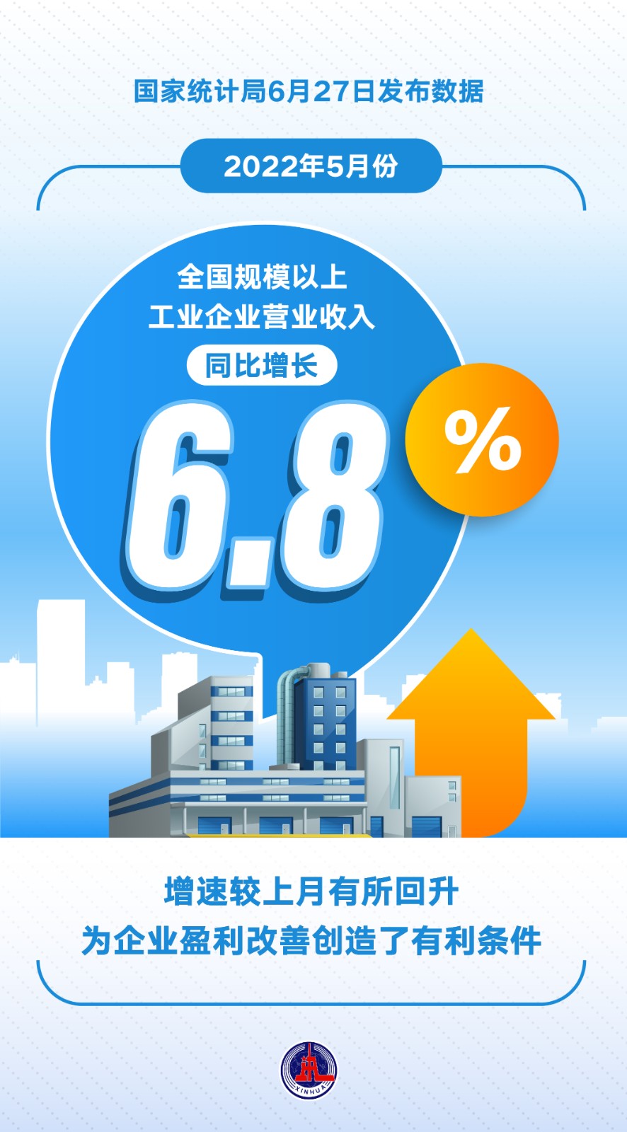 海報(bào):2022年5月份全國規(guī)模以上工業(yè)企業(yè)營業(yè)收入同比增長6.8%