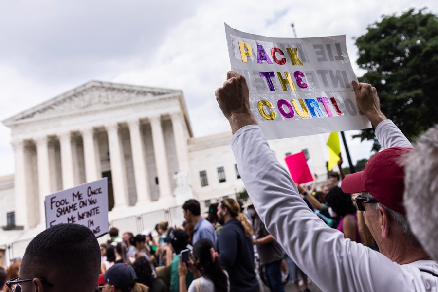 6月24日,墮胎權支持者在美國首都華盛頓的聯(lián)邦最高法院外抗議。