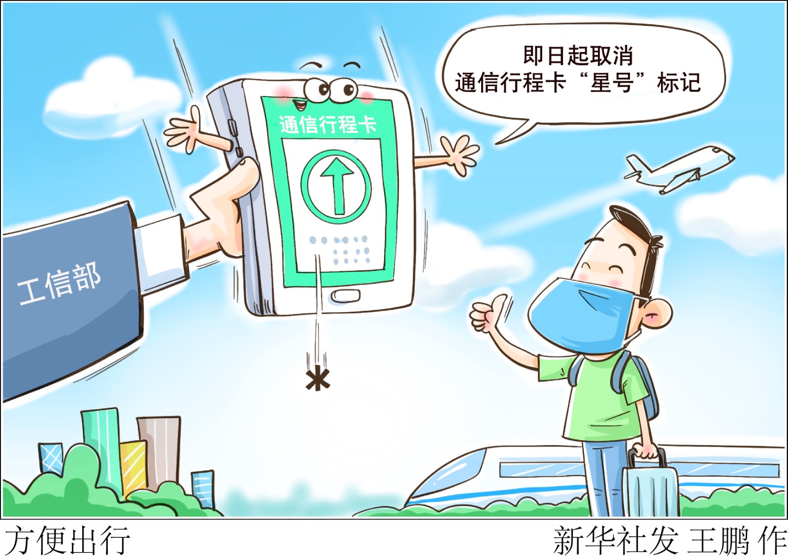 記者6月29日從工信部獲悉,為堅(jiān)決落實(shí)黨中央、國務(wù)院關(guān)于“外防輸入、內(nèi)防反彈”總策略和“動(dòng)態(tài)清零”總方針,支撐高效統(tǒng)籌疫情防控和經(jīng)濟(jì)社會(huì)發(fā)展,方便廣大用戶出行,即日起取消通信行程卡“星號(hào)”標(biāo)記。
