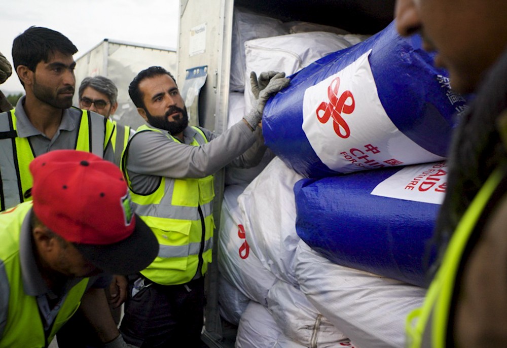 6月27日,中國政府援助阿富汗首批抗震救災(zāi)物資運(yùn)抵阿富汗首都喀布爾機(jī)場(視頻截圖)。