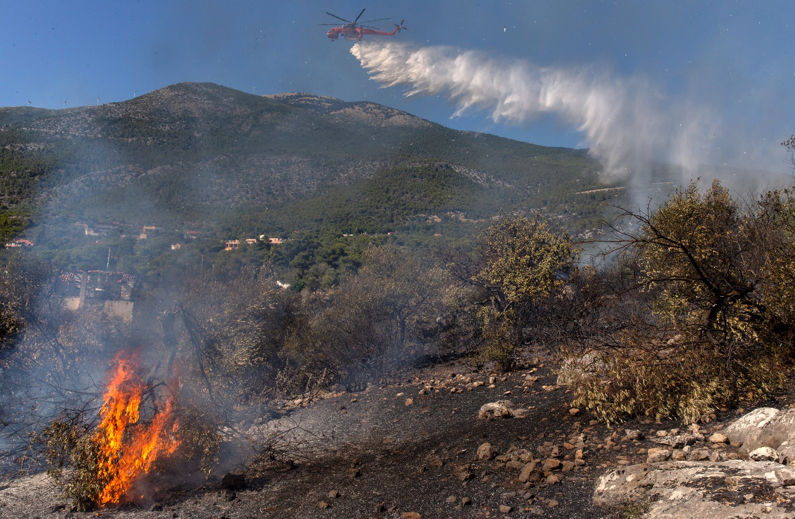 7月5日,一架直升機在希臘首都雅典西部郊區(qū)參加滅火行動。