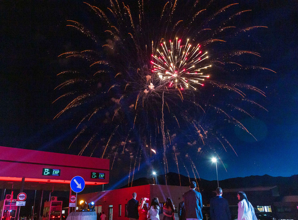 7月13日,在黑山首都波德戈里察,人們在黑山南北高速公路優(yōu)先段通車儀式上觀看煙花表演。