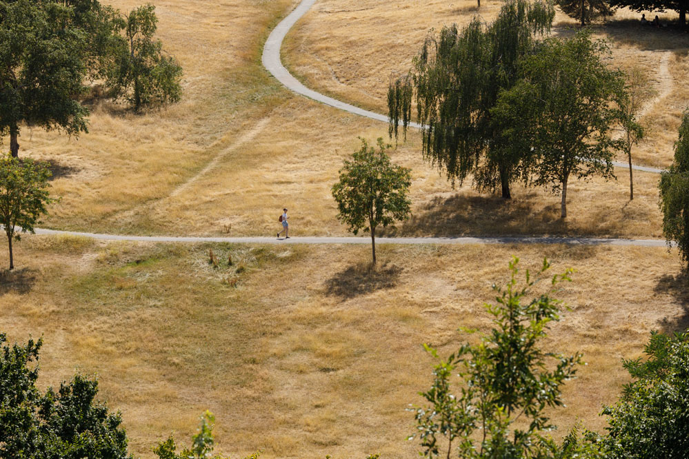 7月18日,一名女子在英國倫敦格林尼治公園內行走。
