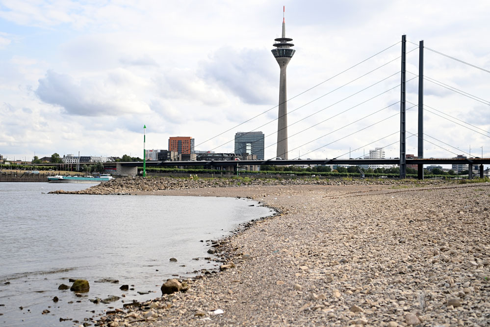 受高溫和干旱影響,德國(guó)萊茵河水位下降。