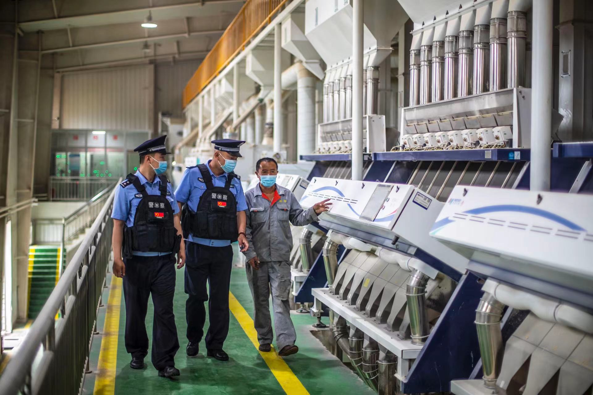 圖為民警對米廠倉庫存儲情況進行檢查。