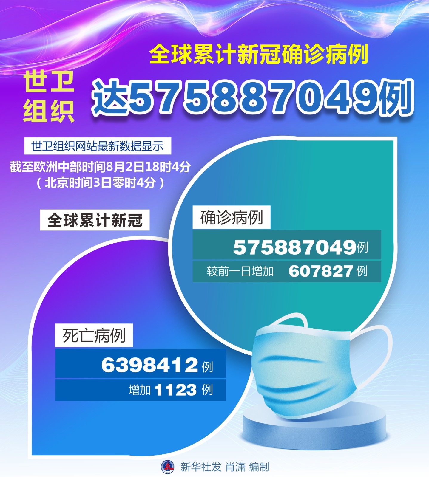 (圖表)世衛(wèi)組織:全球累計(jì)新冠確診病例達(dá)575887049例