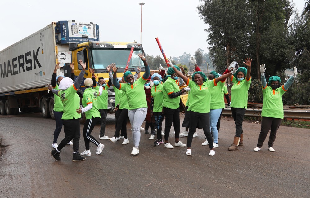 8月2日,在位于肯尼亞利穆魯鎮(zhèn)的桑瑞普工廠,員工慶??夏醽喪着匠隹谥袊?guó)的鮮食牛油果集裝箱發(fā)車。
